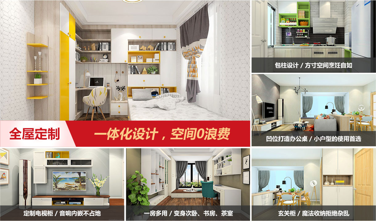 整體衣柜 榻榻米 電視柜組合 上下床 L型櫥柜 餐柜組合 飄窗利用 更多>>